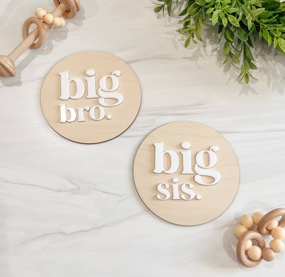 This listing is for (1) wooden laser-cut Big Bro or Big Sis announcement sign featuring white acrylic accents.