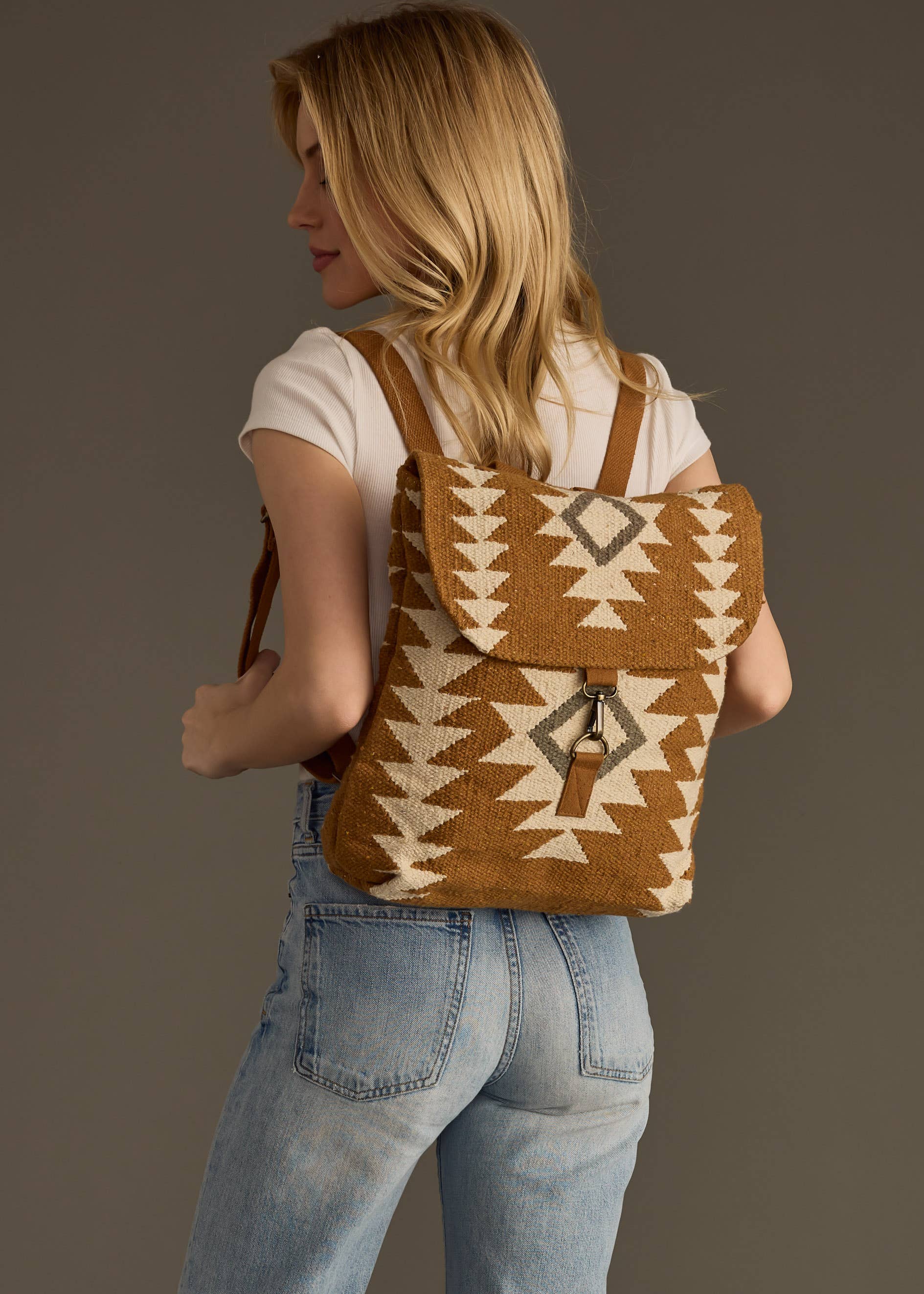 Camel, Cream & Gray Aztec Backpack