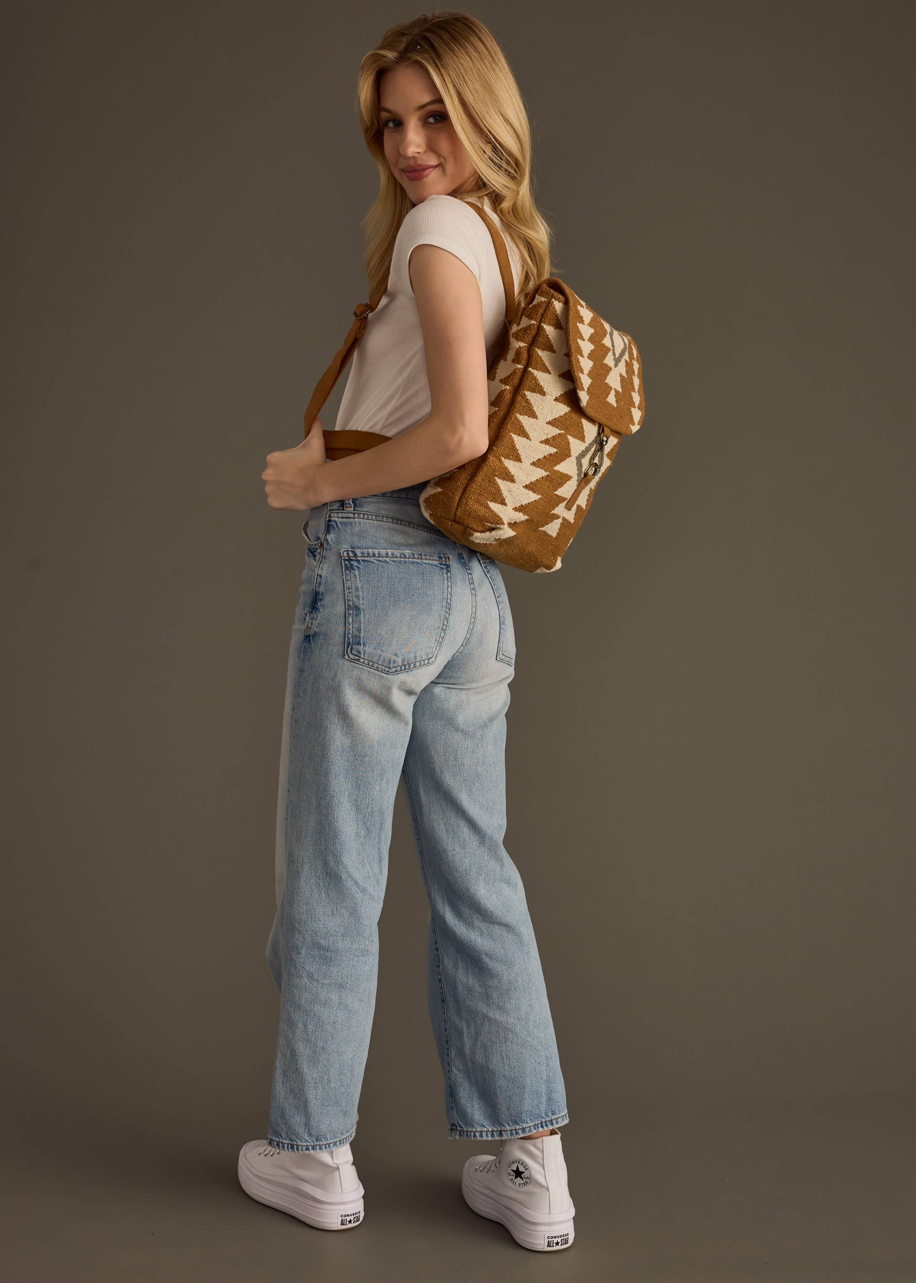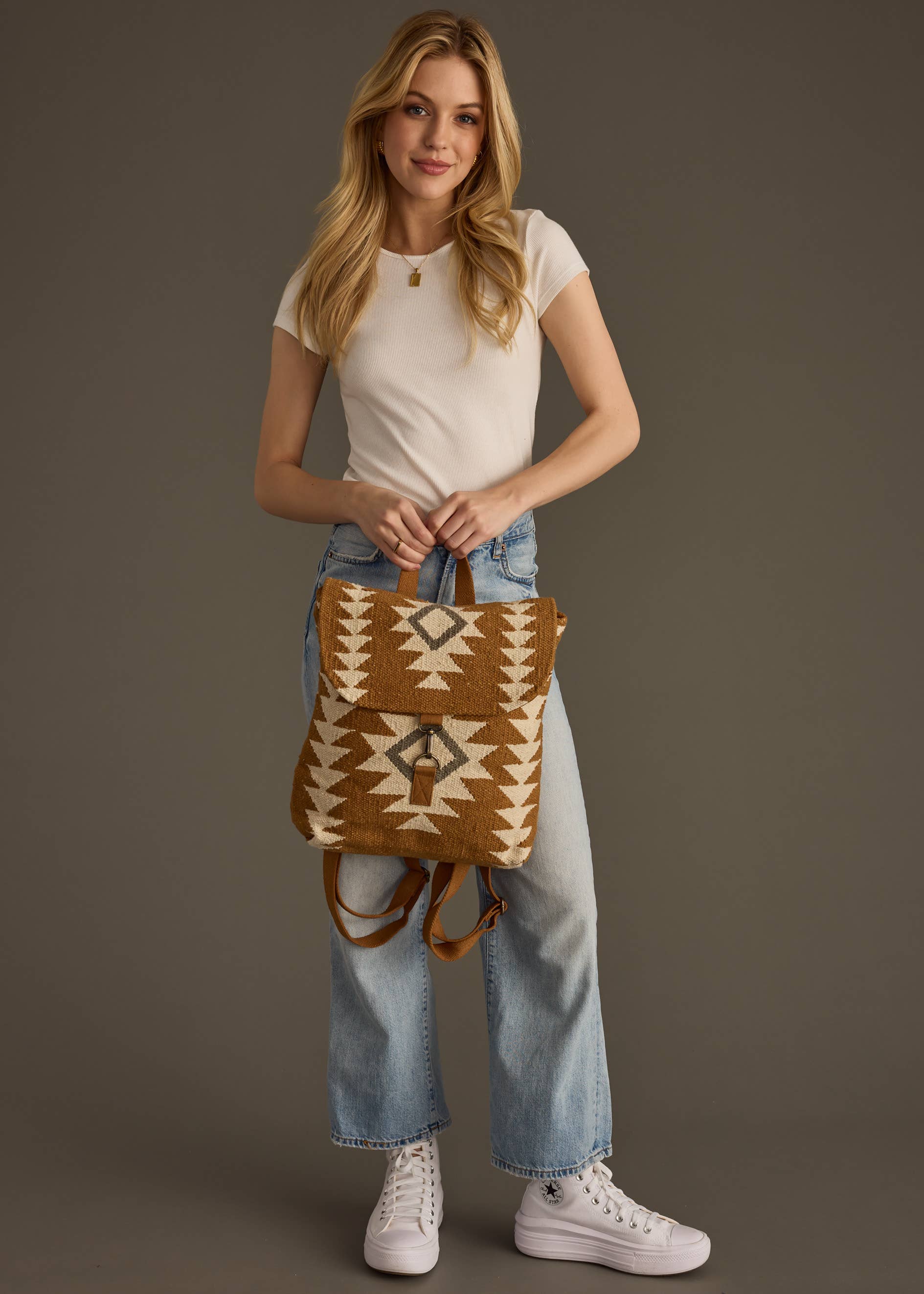 Camel, cream & gray Aztec backpack
