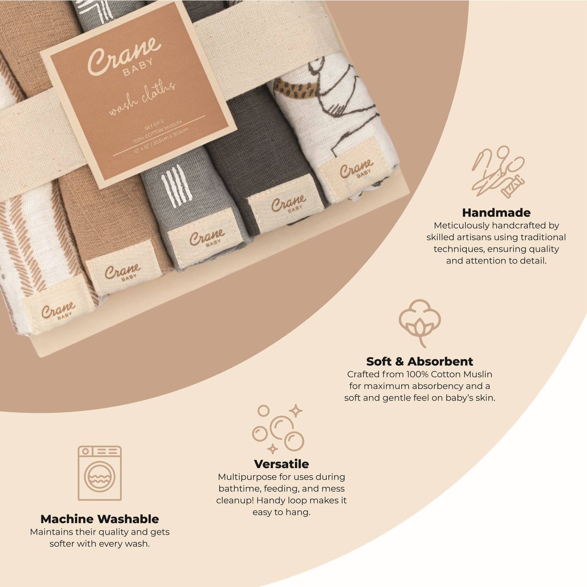 Introducing the Kendi 5-pc. Baby Wash Cloth Set in Safari Animal print, a must-have for every newborn's bath time routine. These washcloths are made from soft, premium muslin cotton, providing gentle care for your baby's delicate skin. These washcloths are durable, absorbent, and easy to clean, making them an essential addition to your baby care collection.