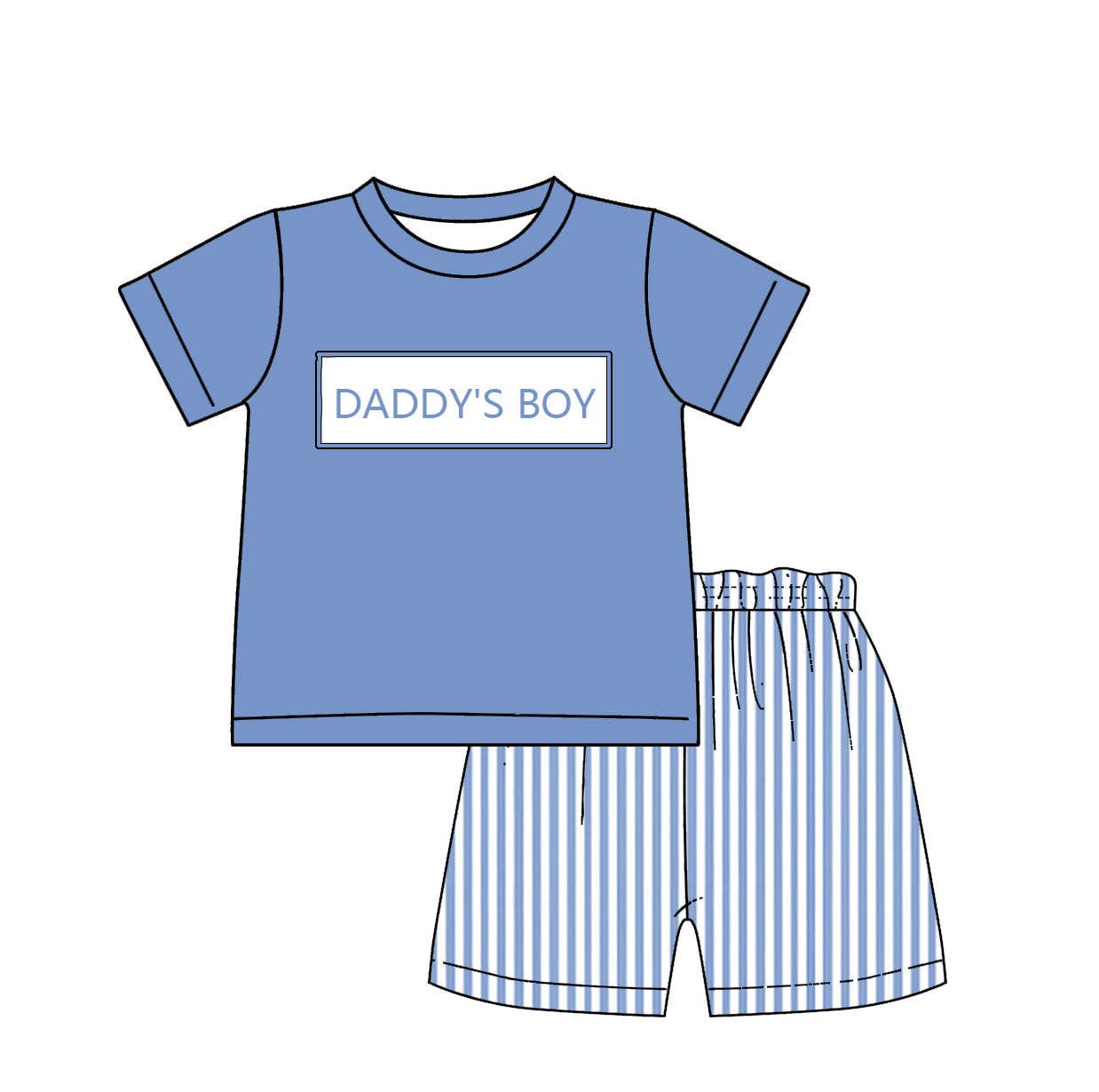 Father's Day Smocked "DADDY'S BOY" Blue Stripes Short Set