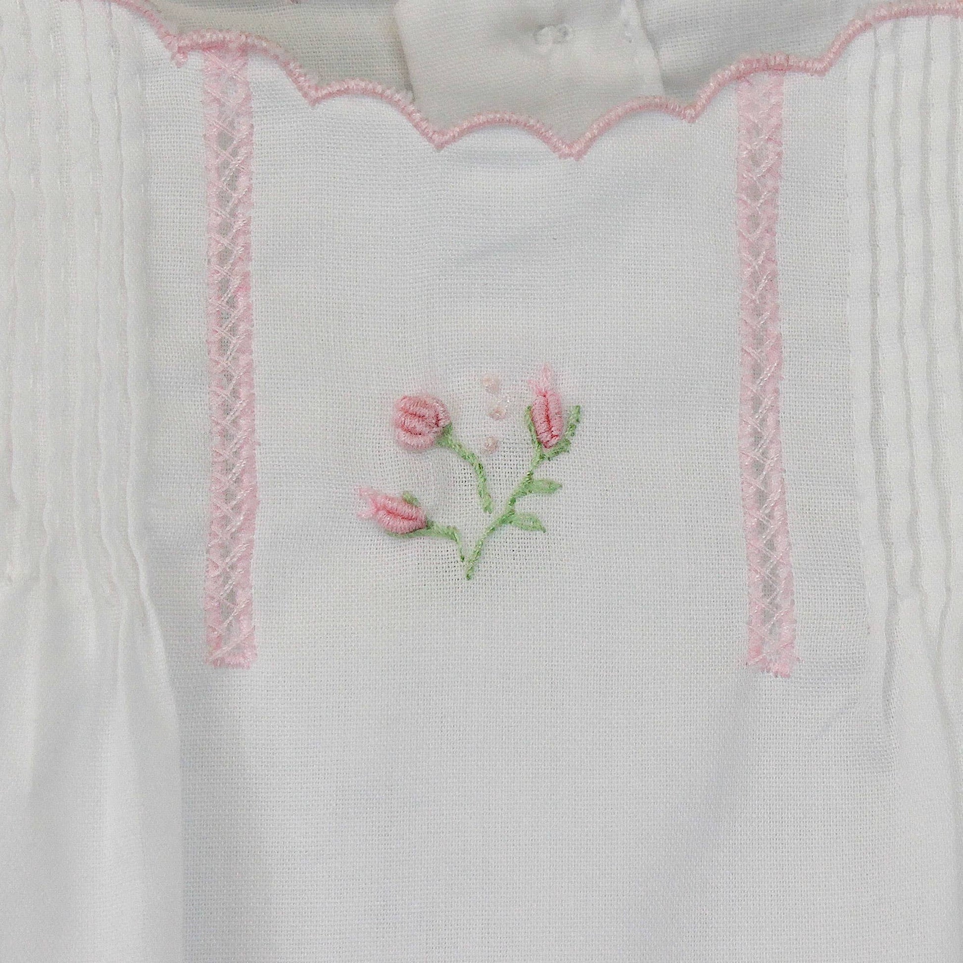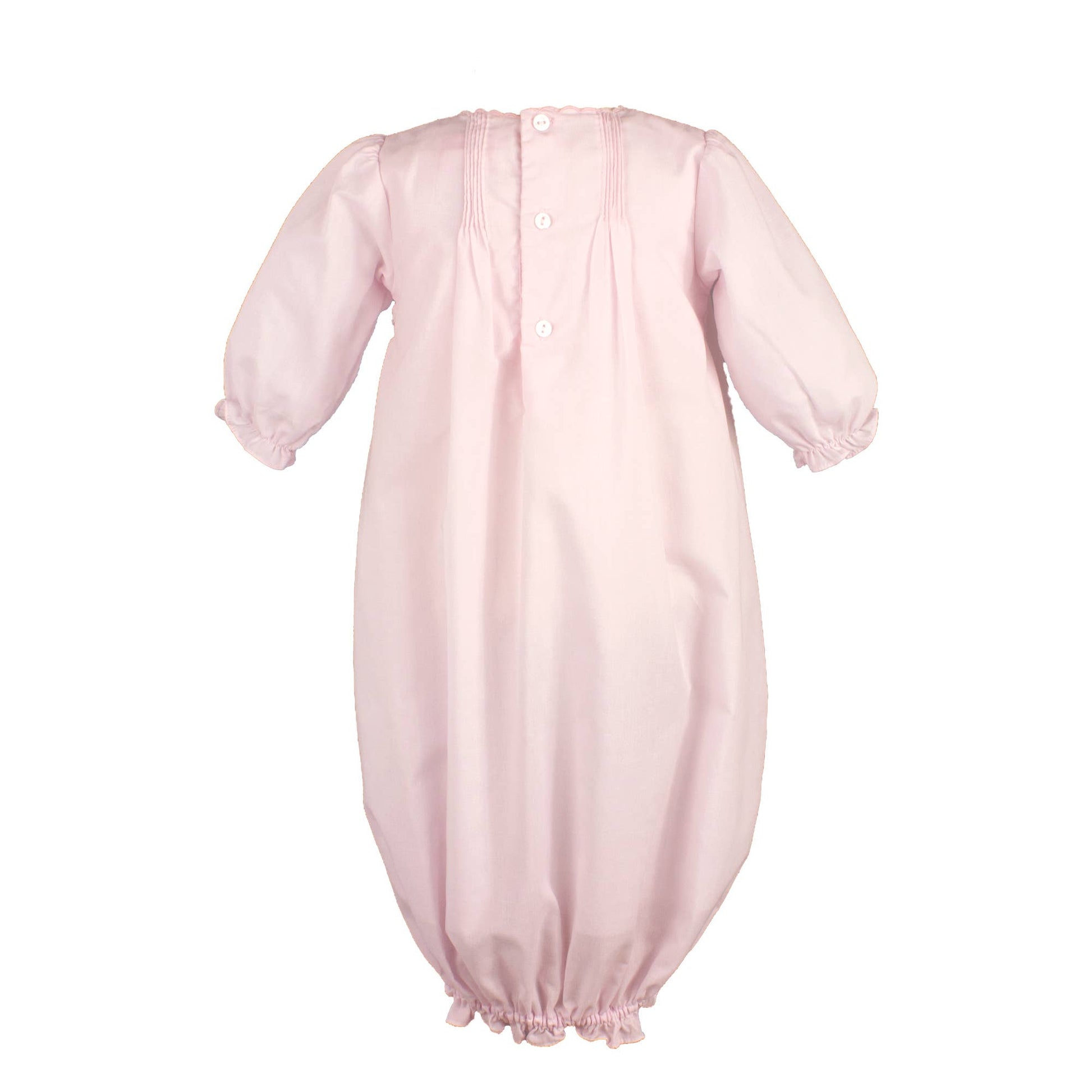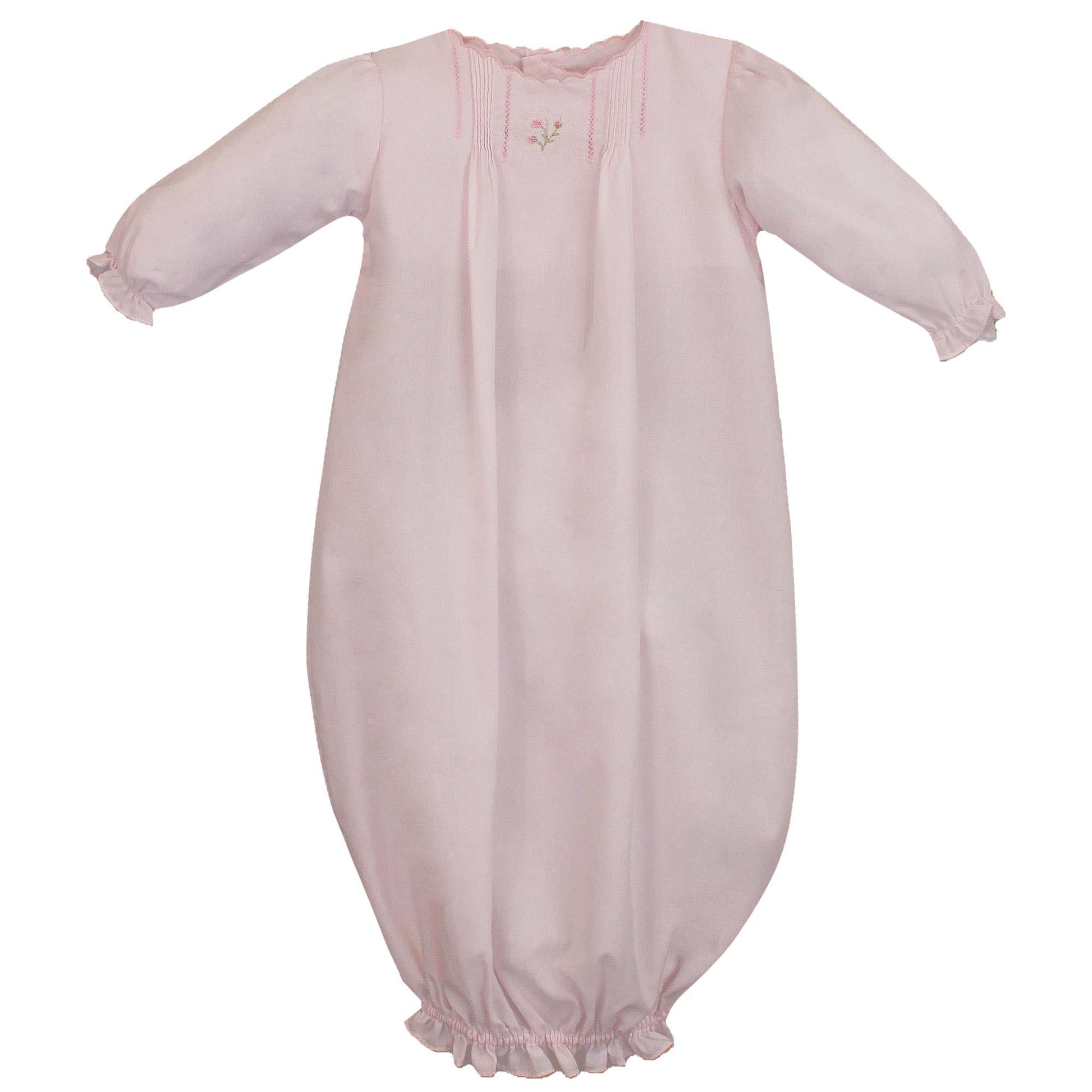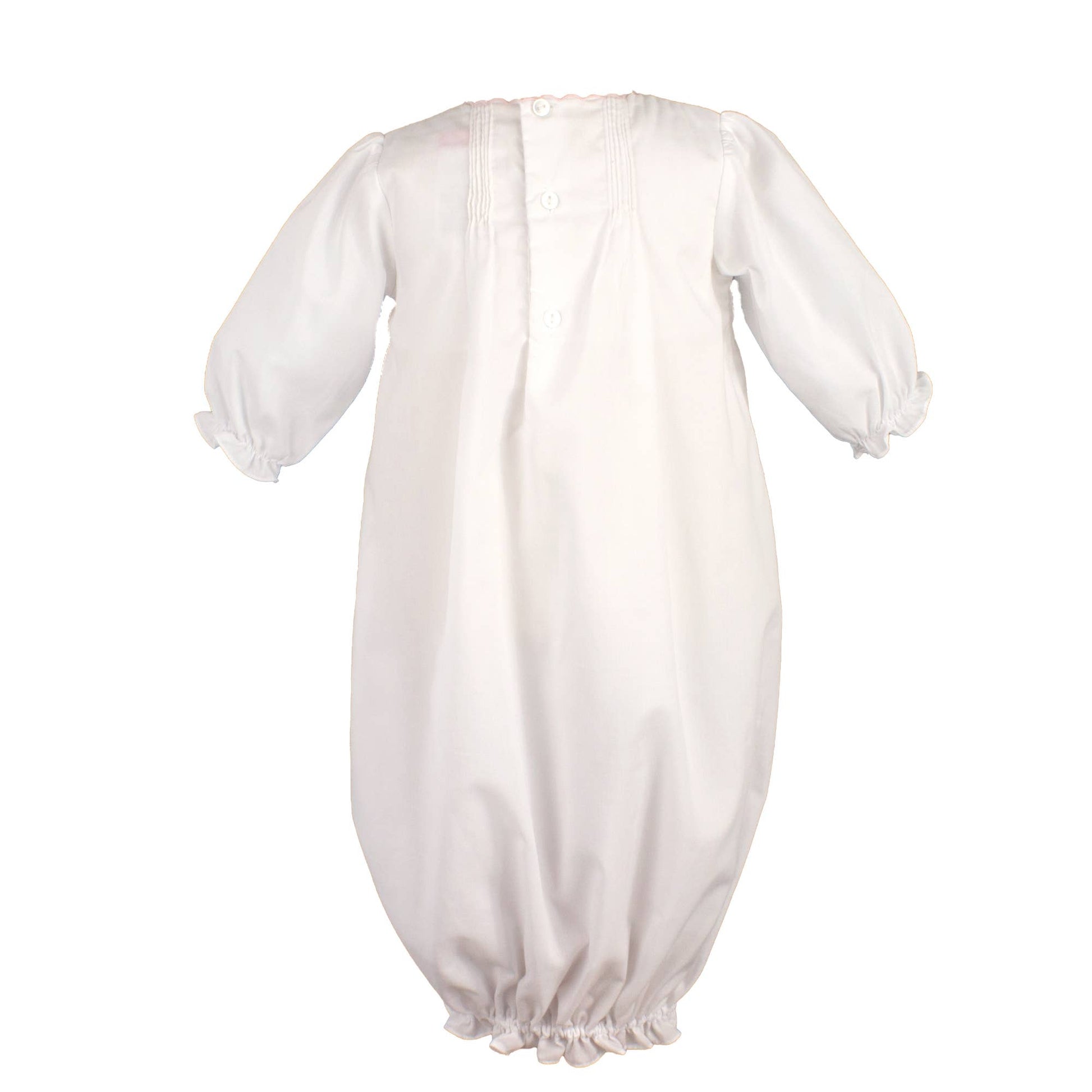 Featuring heirloom-quality handcrafted details like pintucks and open work embroidery, this piece is sure to become a treasured keepsake.