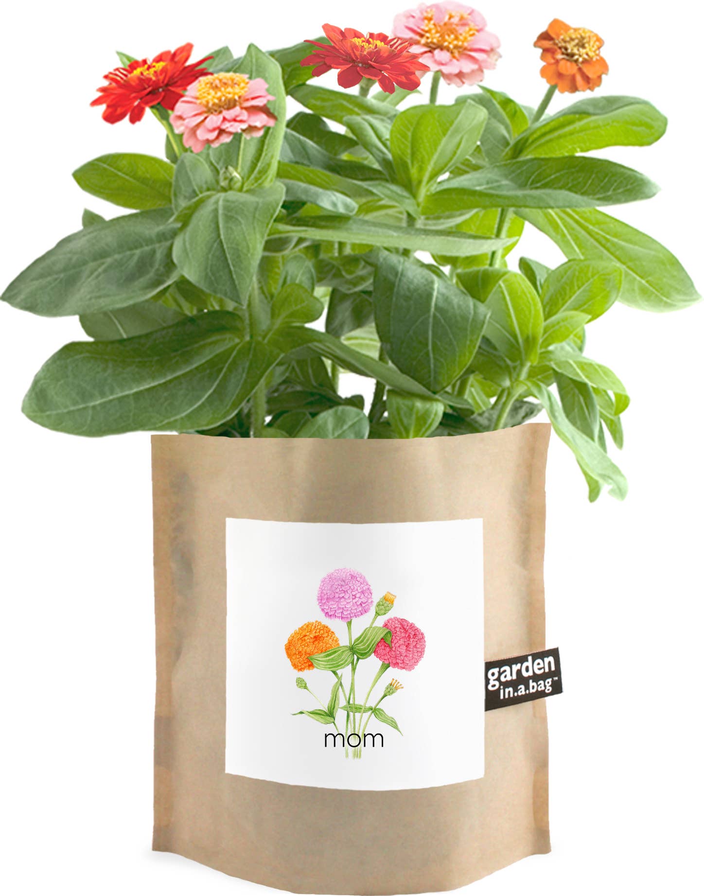 Dwarf zinnias are easy to grow beautiful plants with multi petaled flowers that bloom in a variety of bold colors. Complete to grow kit in a leak-proof bag.