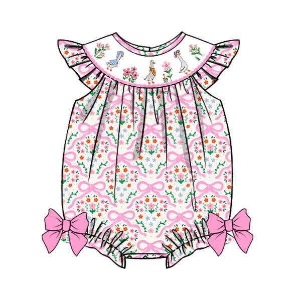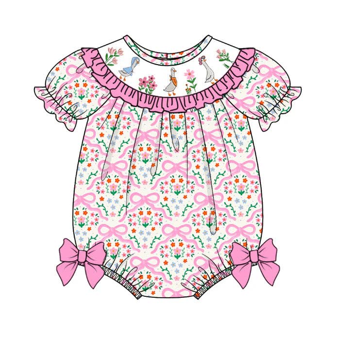 Delight your little one with our Pink Floral Silly Goose Romper! This adorable summer outfit features charming embroidery and a smocked design that allows for comfortable movement. Perfect for warm weather adventures, playdates, or family photos. The playful floral pattern and silly goose details will bring smiles all season long!