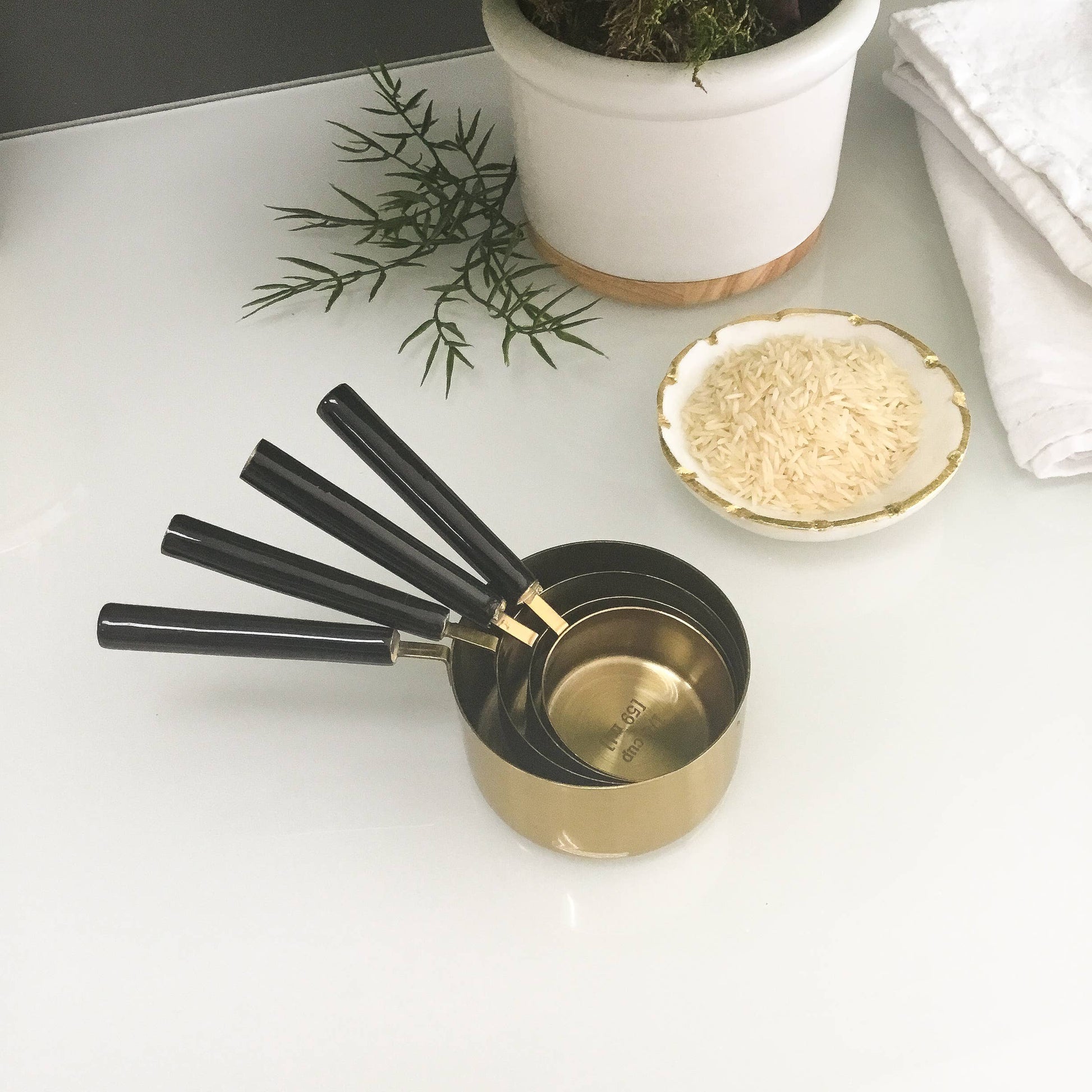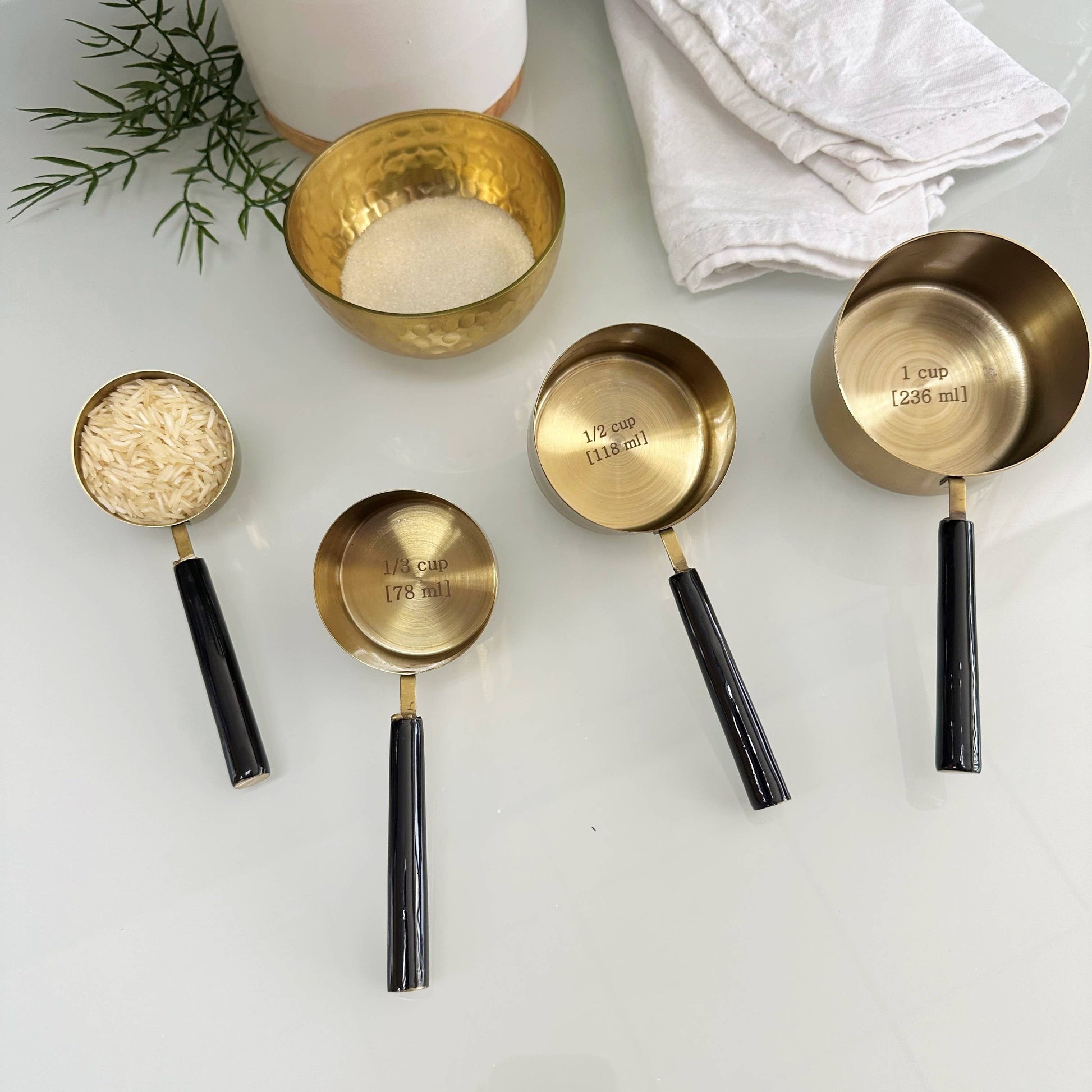 Black Enamel & Gold Measuring Cups, Set of 4