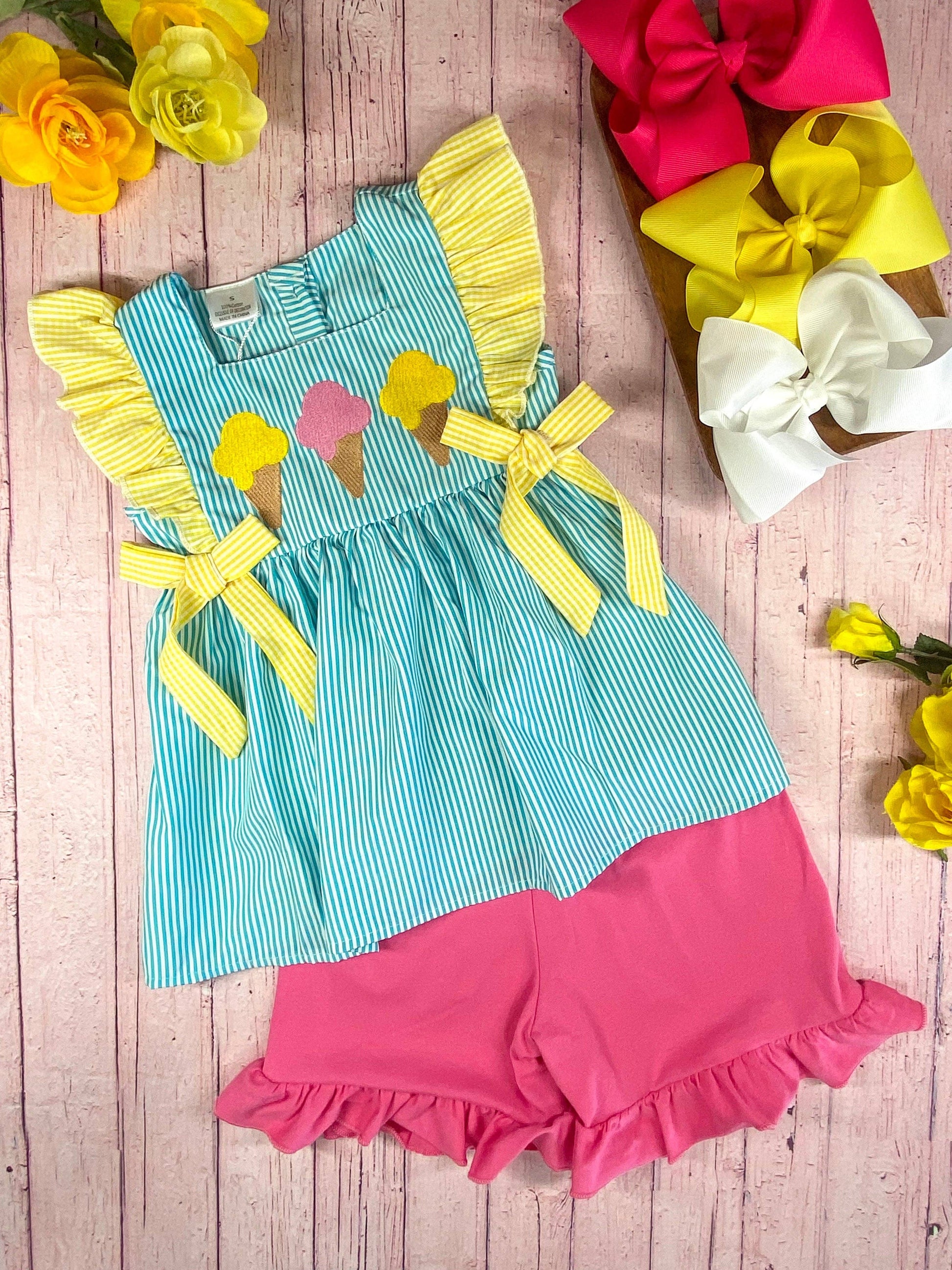 Indulge in the sweetness of summer with our Ice Cream Ruffles & Bows Shorts Set. Featuring charming ruffles and bows, this set will keep your little one cool and comfortable while adding a touch of adorable style. Perfect for any ice cream lover, this set is a must-have for any summer wardrobe!