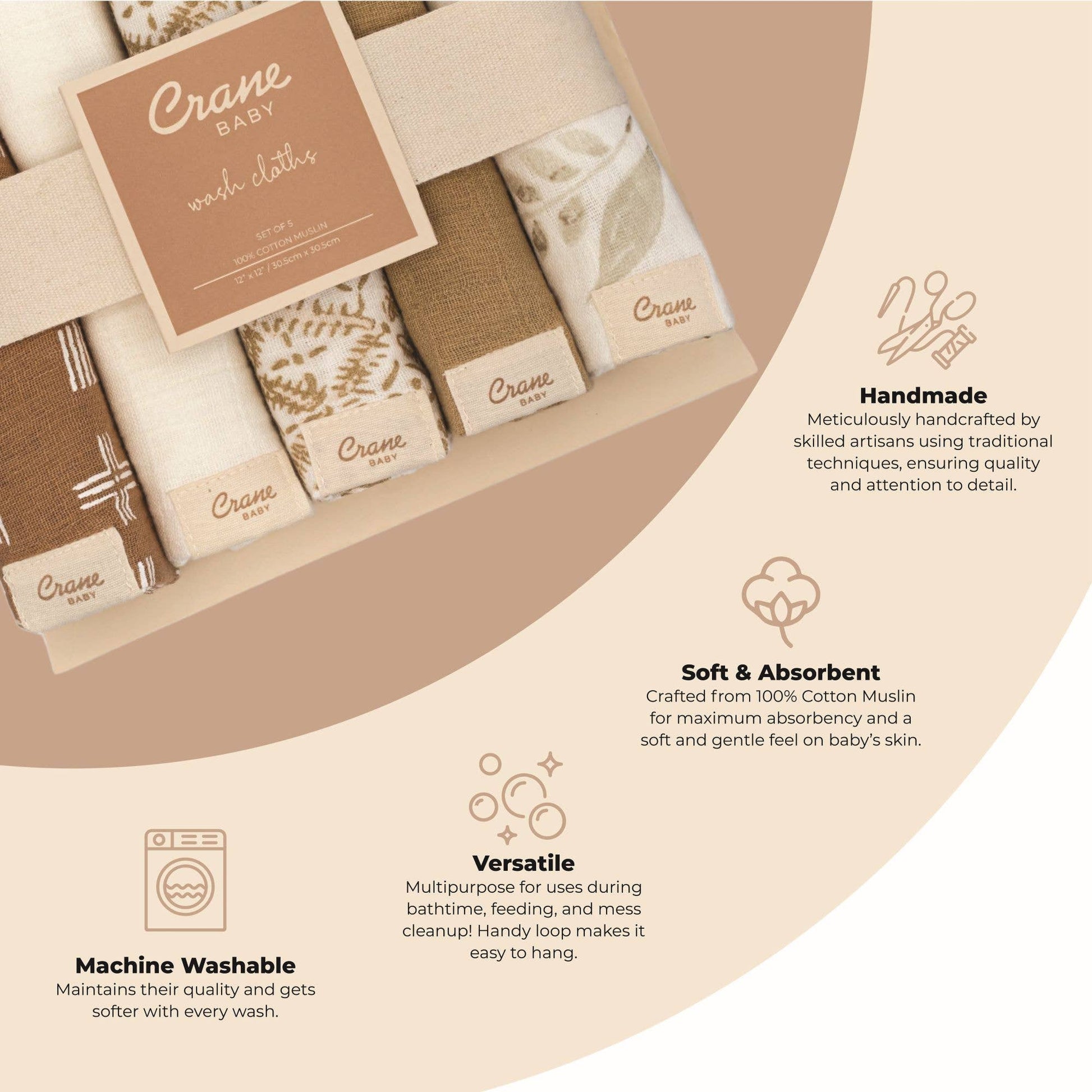 Introducing the Ezra 5-pc. Baby Wash Cloth Set in Woodlan Animal print, a must-have for every newborn's bath time routine. These washcloths are made from soft, premium muslin cotton, providing gentle care for your baby's delicate skin. These washcloths are durable, absorbent, and easy to clean, making them an essential addition to your baby care collection.