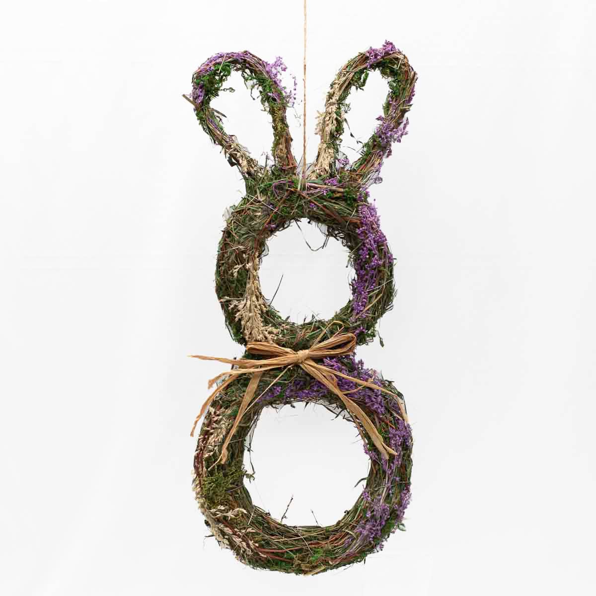 Lavender Twig Bunny is detailed with lavender sprigs and a straw bow