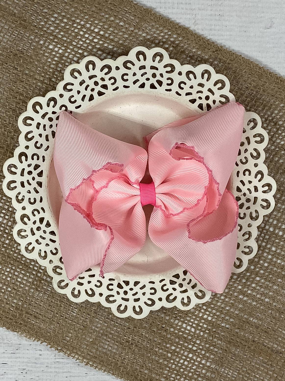 Add a touch of playfulness with our Light Pink hair bow, featuring a charming Pink Moonstitch design. Perfect for a quirky and fun look, this bow will surely make a statement.
