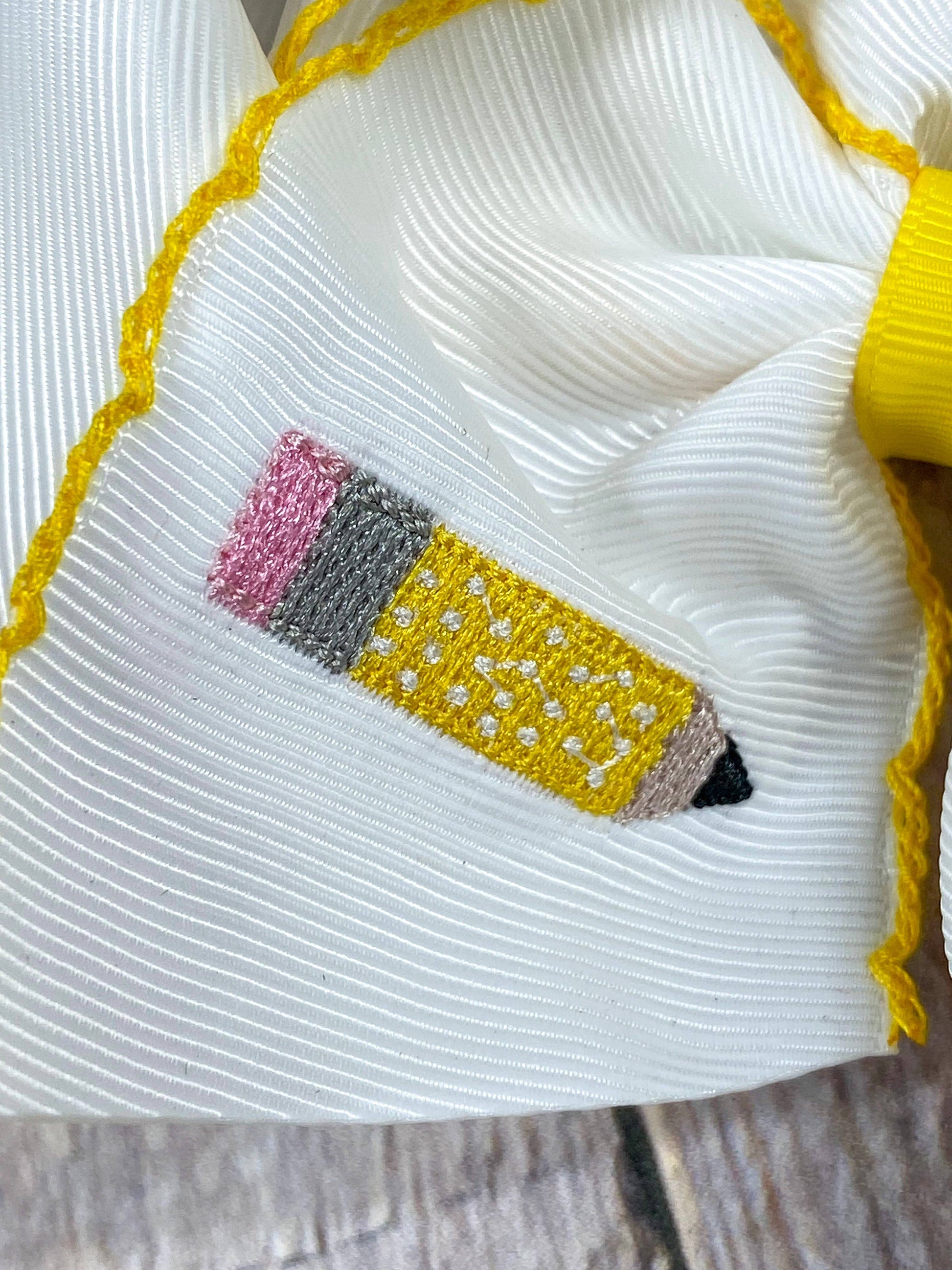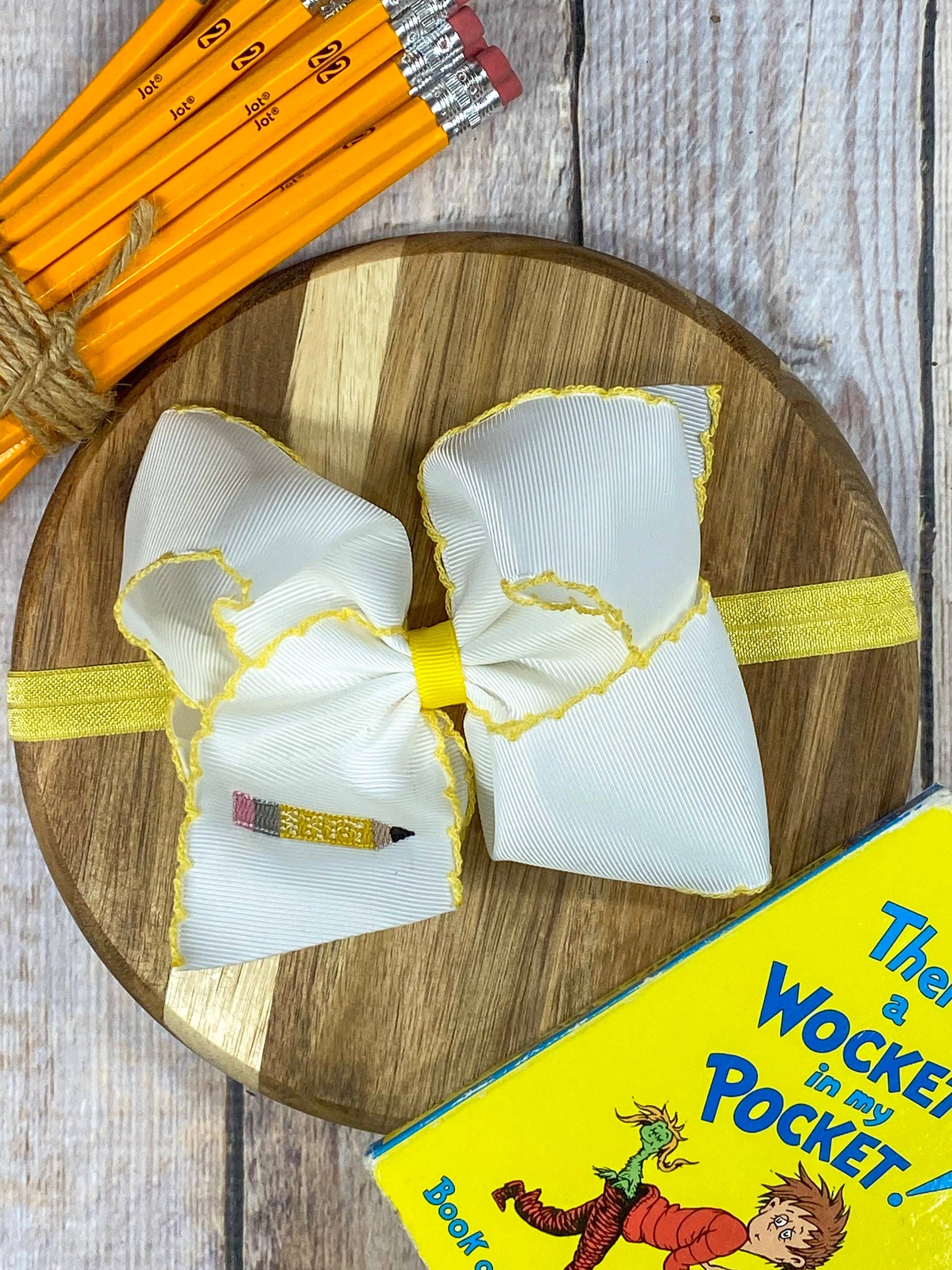 Step up your hair game with our Pencil Embroidered Moonstitch Bow Headband! This trendy and stylish headband adds a touch of whimsy to any outfit. The intricate pencil embroidery and delicate moonstitch bow make a statement that is sure to turn heads. Elevate your look with this unique accessory!
