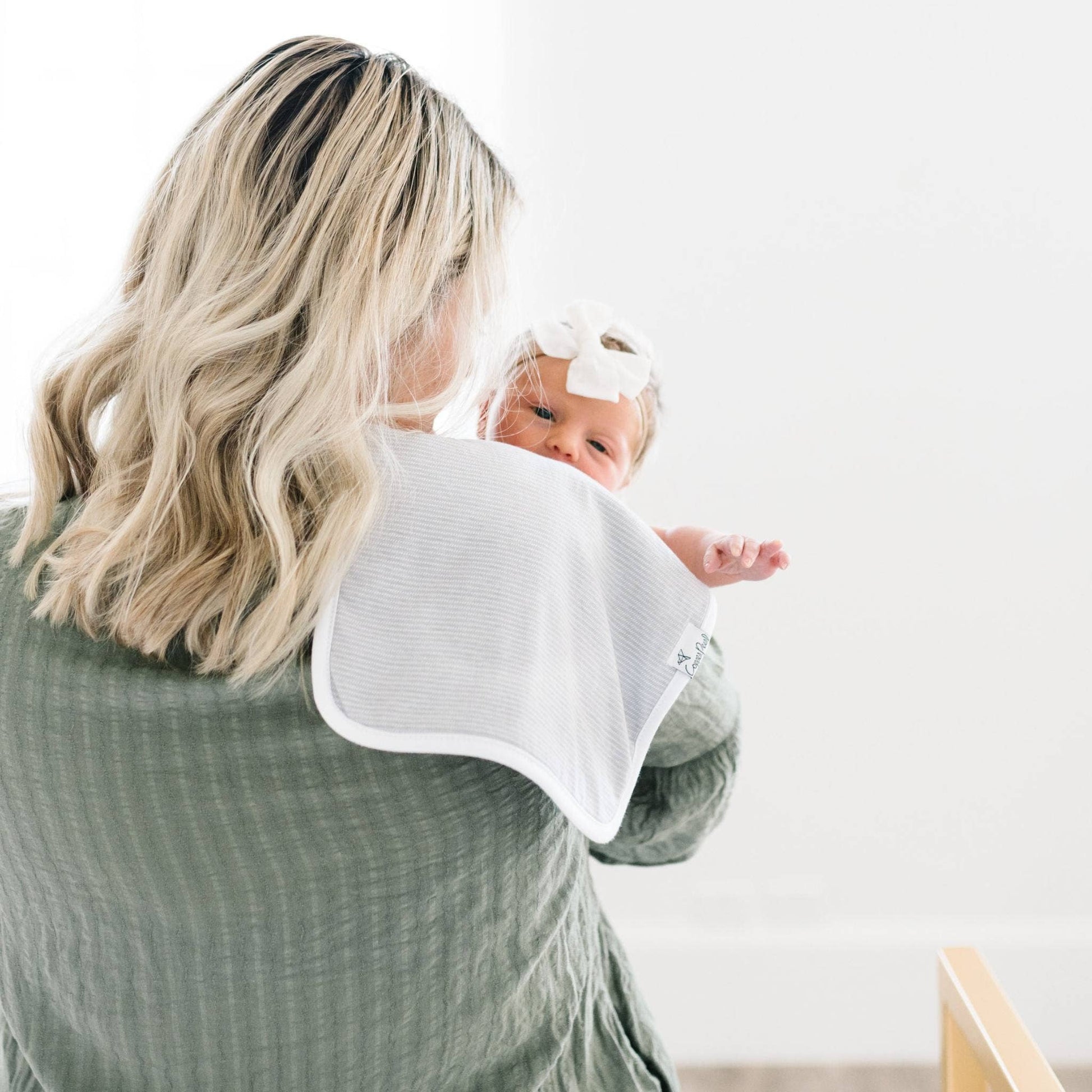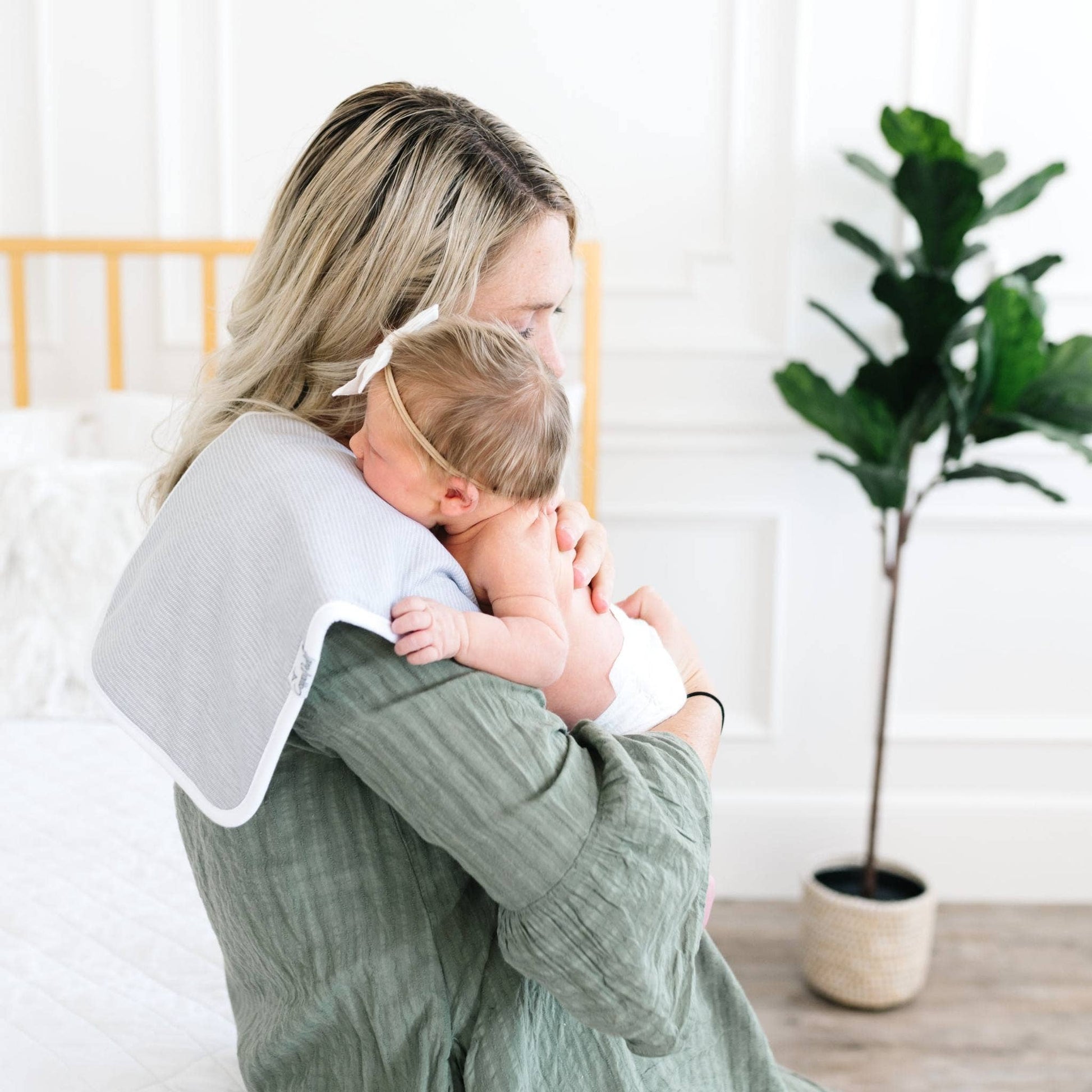 * 100% COTTON FRONT AND BACKING * Our burp cloths are designed with baby’s comfort in mind. That’s why we created them with 100% ultra-soft cotton layers on the front (patterned) and back (plain white). You can feel confident that baby will feel cozy against your shoulder while burping.