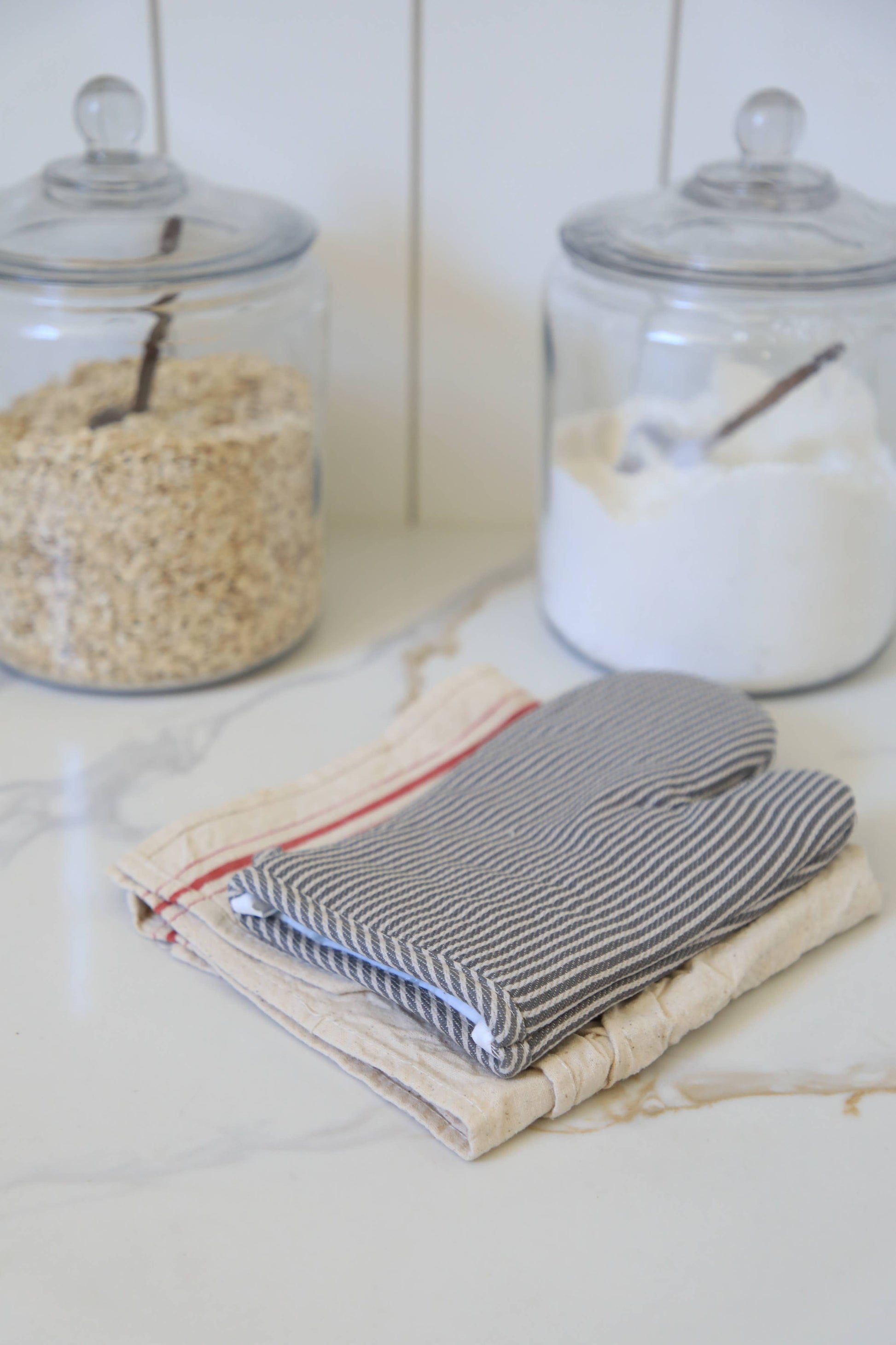 Features a classic stripe pattern that adds a timeless charm to your kitchen decor.