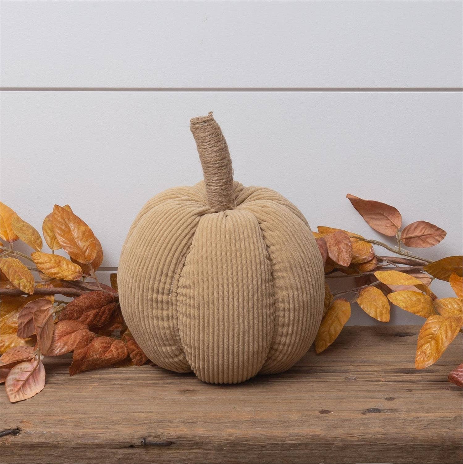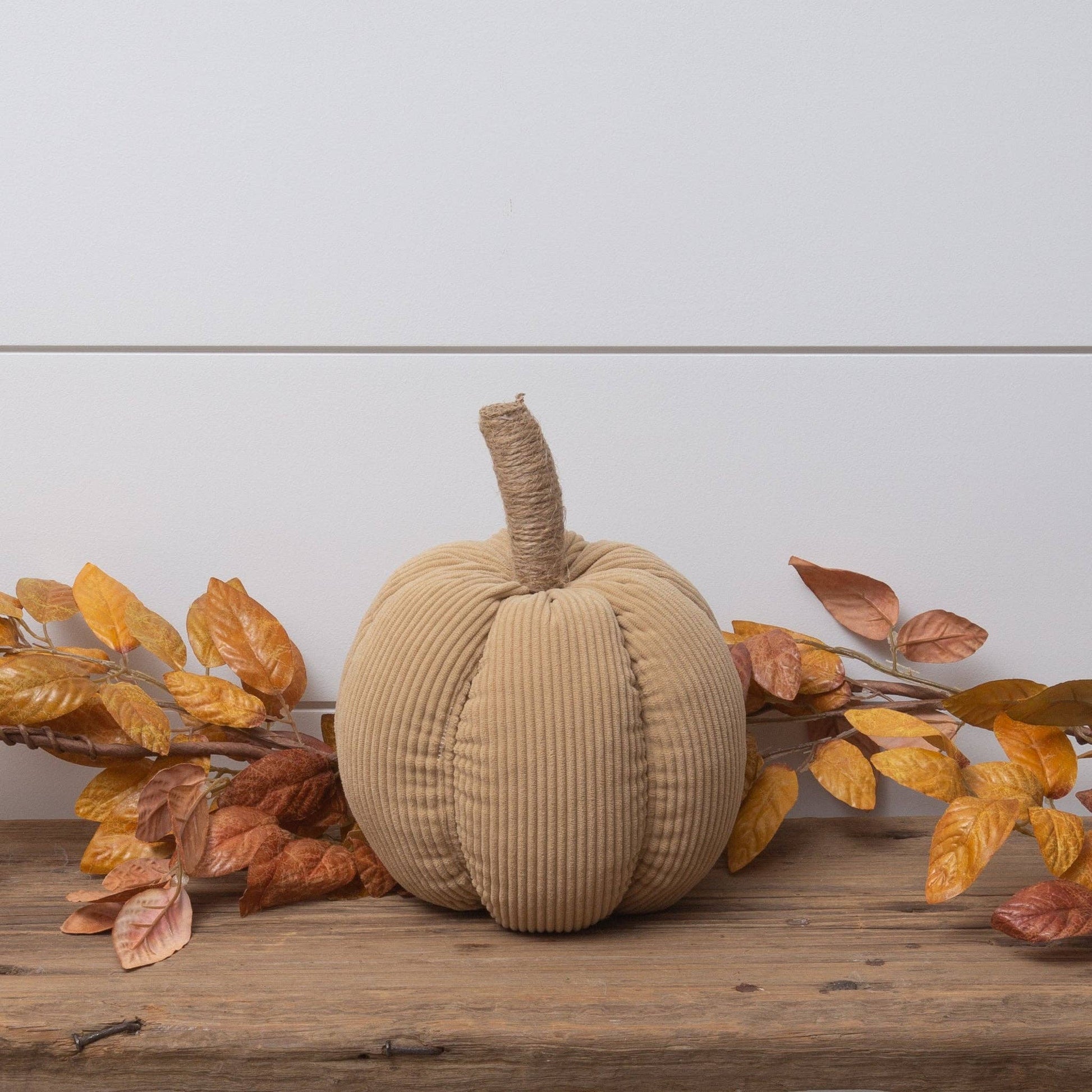 Tan Corduroy Pumpkin with Jute Stem, Md (PC)
