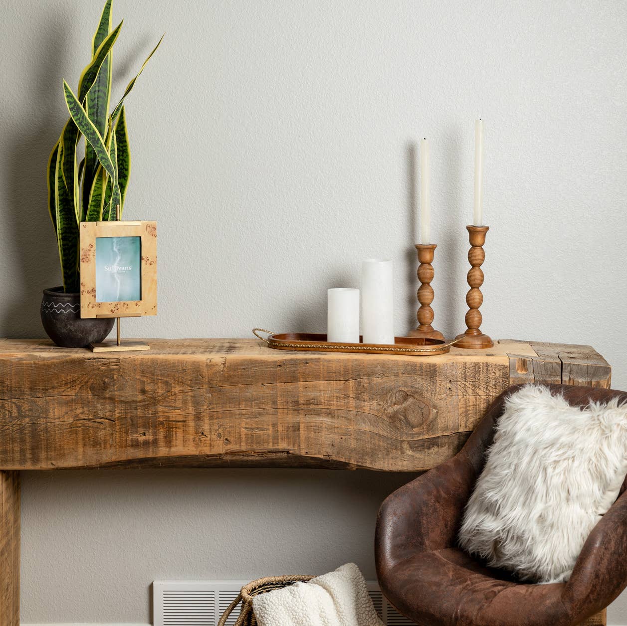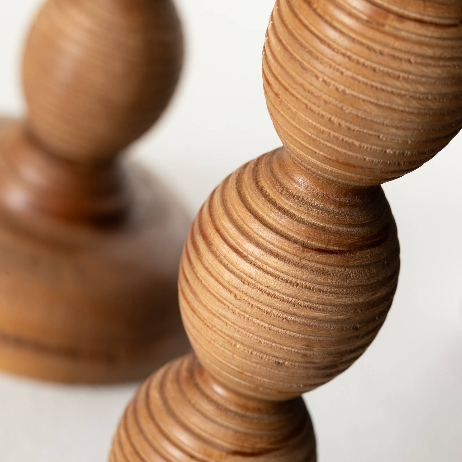 Set the mood and create a cozy, warm atmosphere with this set of 2 natural wood candleholders. Perfect for displaying taper candles, these simple yet elegant candleholders make an ideal accent piece to complement any home decor style. Whether used for romantic candlelit dinners or just relaxing evenings at home, their rustic and versatile design instantly elevates your space. Crafted from quality wood, they effortlessly bring a touch of natural beauty and ambiance to your living room, dining area, or anywhere you want to set the mood with candlelight.